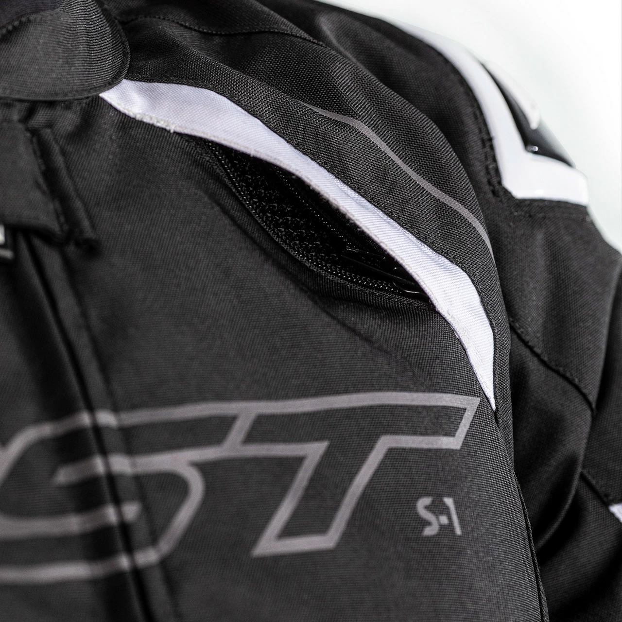 RST S-1 CE Mens Textile Jacket – Black / Black / White .